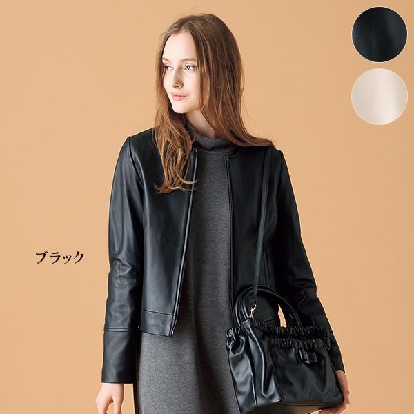 ブルゾン アウター レディース 秋 冬 ラム革ノーカラーブルゾン 40代 50代 60代 70代 ミセスファッション シニアファッション 婦人 服 京都通販 ミセスのファッション館 通販 Yahoo ショッピング