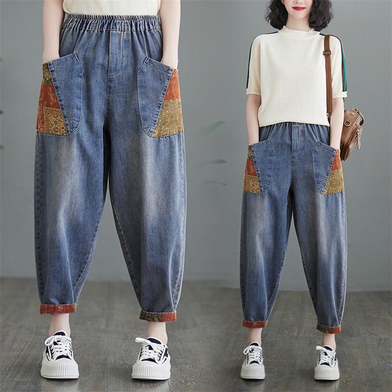 デニムパンツ レディース 可愛い ウェストゴム ポケット付き お洒落 ゆったり カジュアル 着痩せ 春夏 ラフでオシャレのスタイルに 人気ブランドの新作